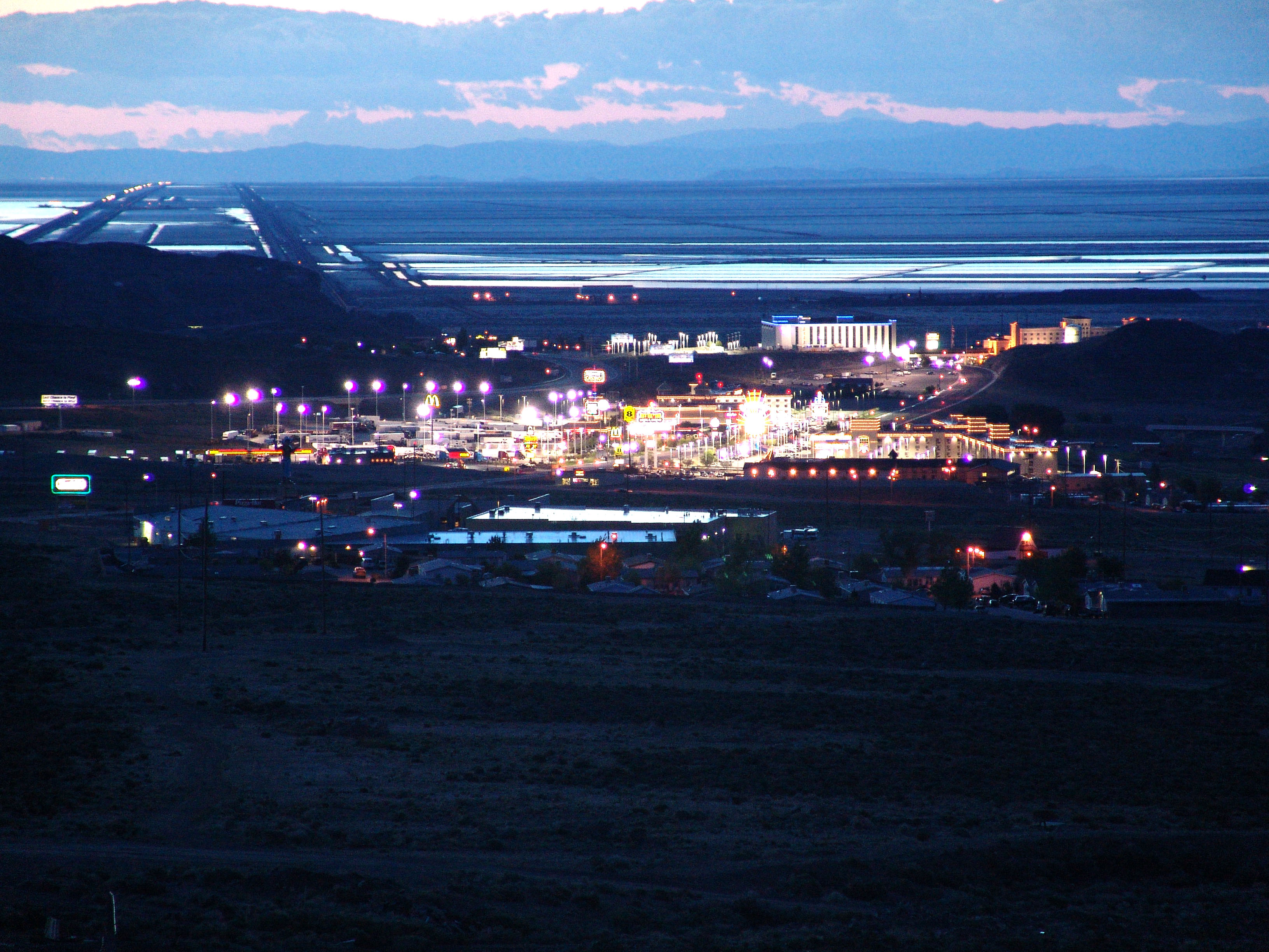 Wendover from a nearby hill clearly showing the curvature of the earth (the road in the upper left distance is razor straight, a