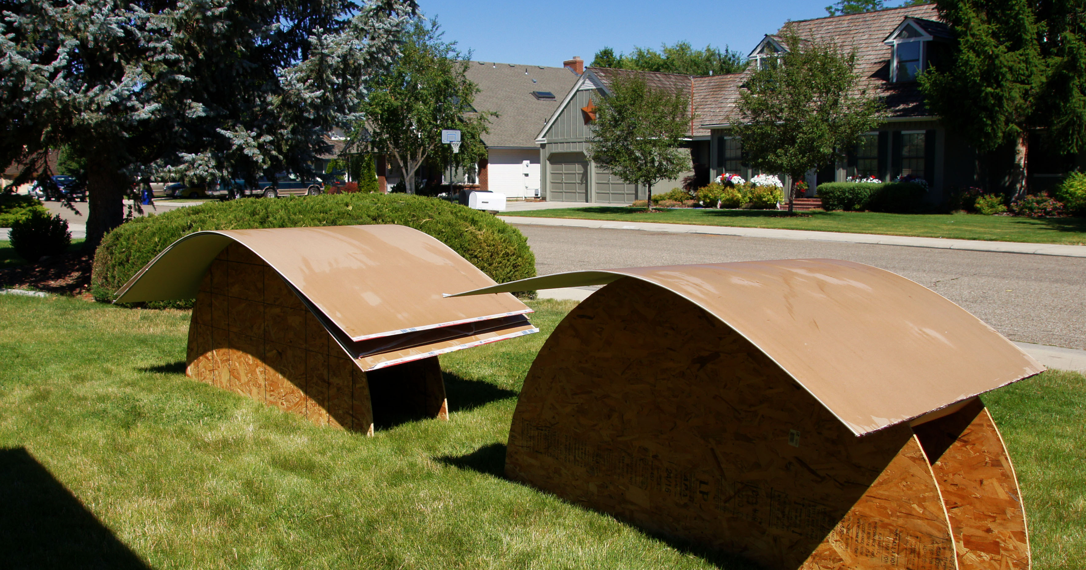 Bending the sheetrock to match the curve.