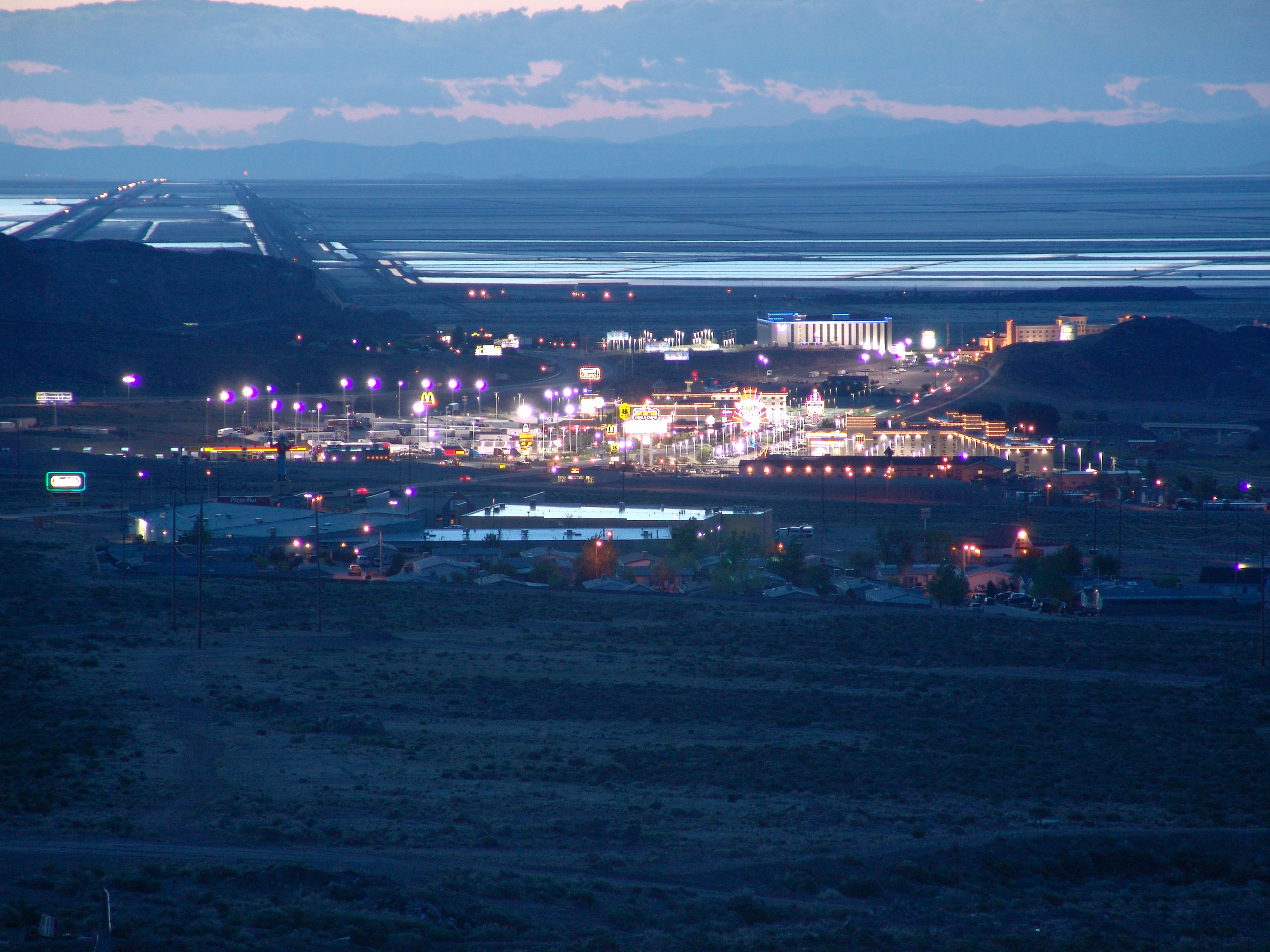 Wendover from a nearby hill clearly showing the curvature of the earth (the road in the upper left distance is razor straight, a