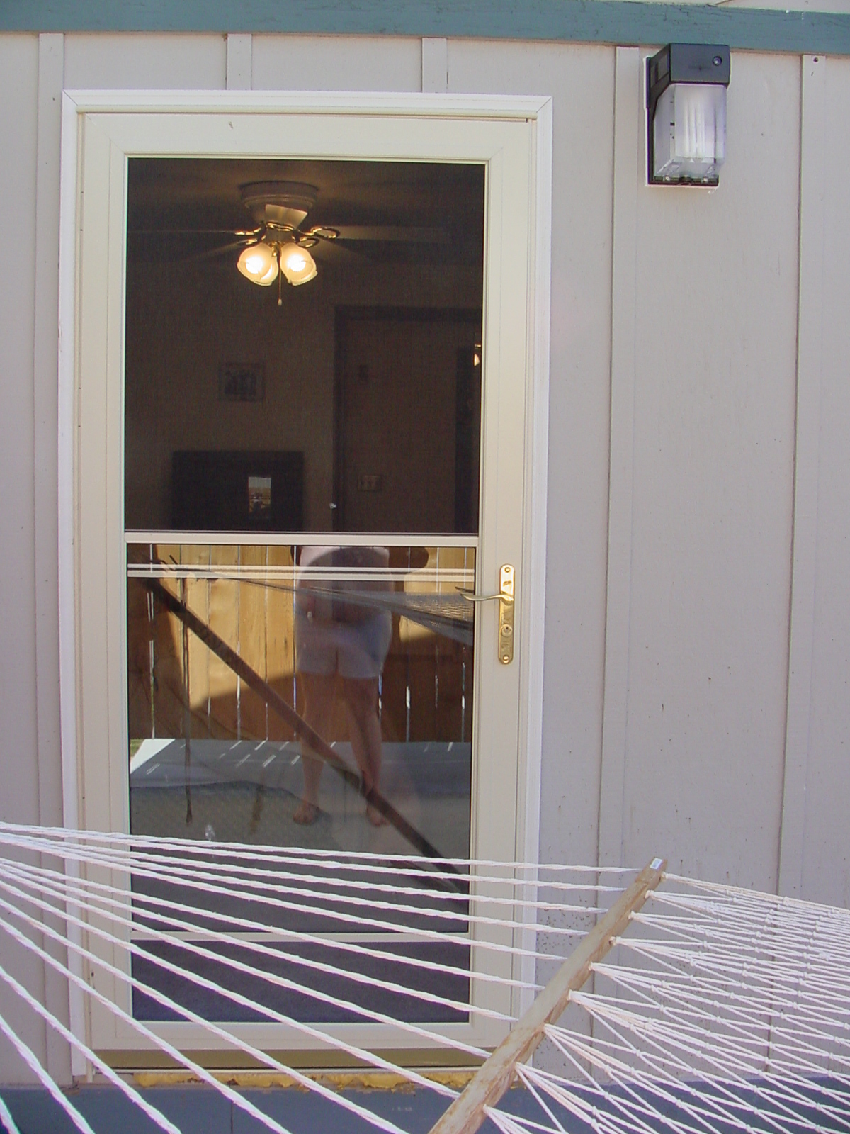 A better shot of the new screen door and view into master bedroom and partially dressed photographer.