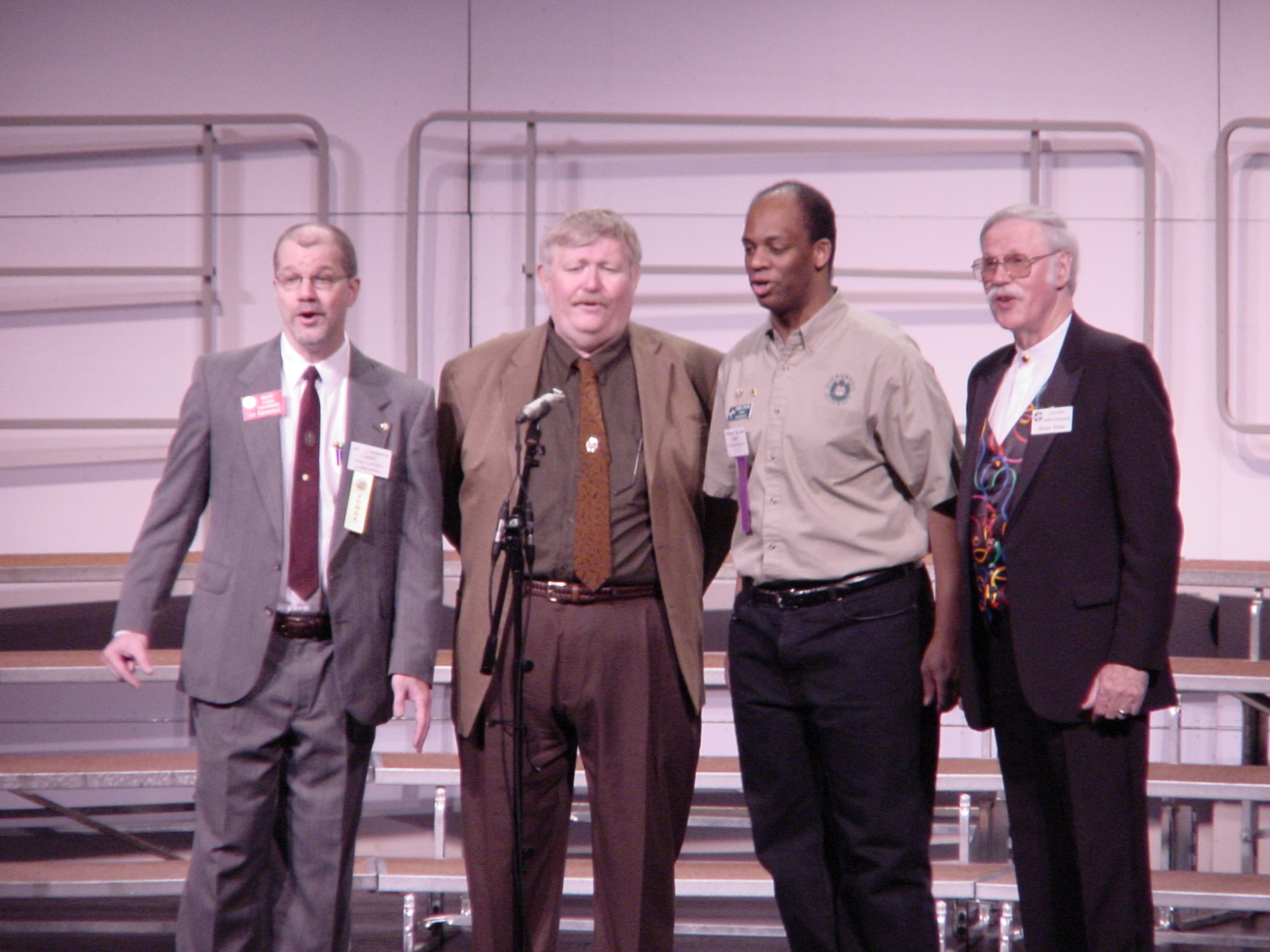 A couple of judges (Dan Signor and Reid Stewart), our district president Kendall Williams, and our MC, Brian Ayers, warming up